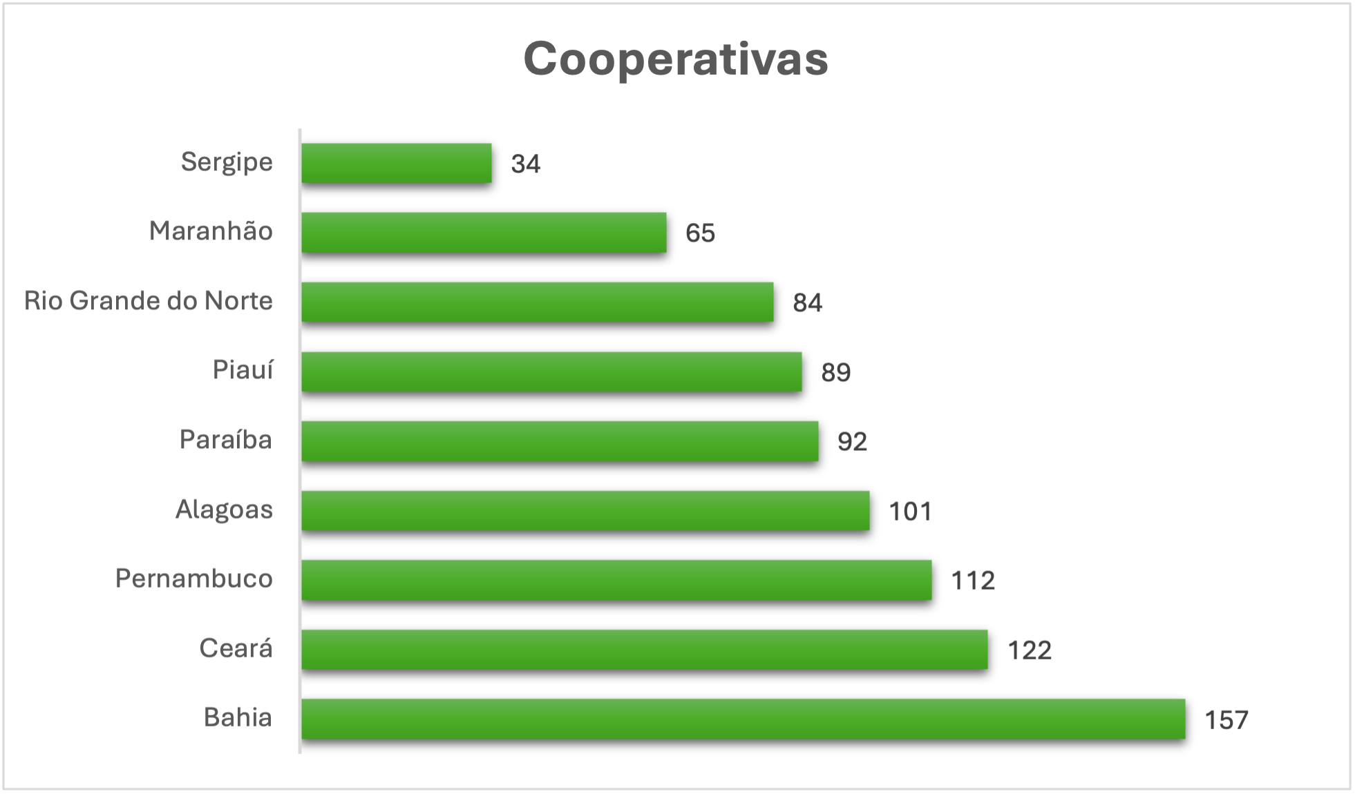 No Brasil, contamos com mais de 23 milhões de cooperados, distribuídos em cerca de 4,5 mil cooperativas, que atuam em diversos setores da economia (OCB, 2024). Mais especificamente no Nordeste, são 856 cooperativas e quase um milhão de cooperados, que reafirmam o compromisso com o desenvolvimento regional baseado na justiça social, sustentabilidade e inclusão produtiva.